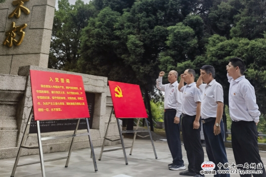 項目黨員在楊連第大橋紀念碑處重溫入黨誓詞(沈正華 供圖)